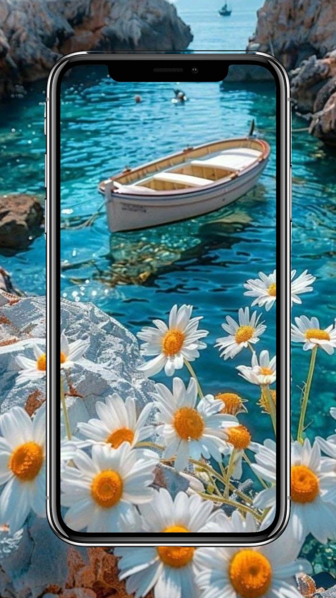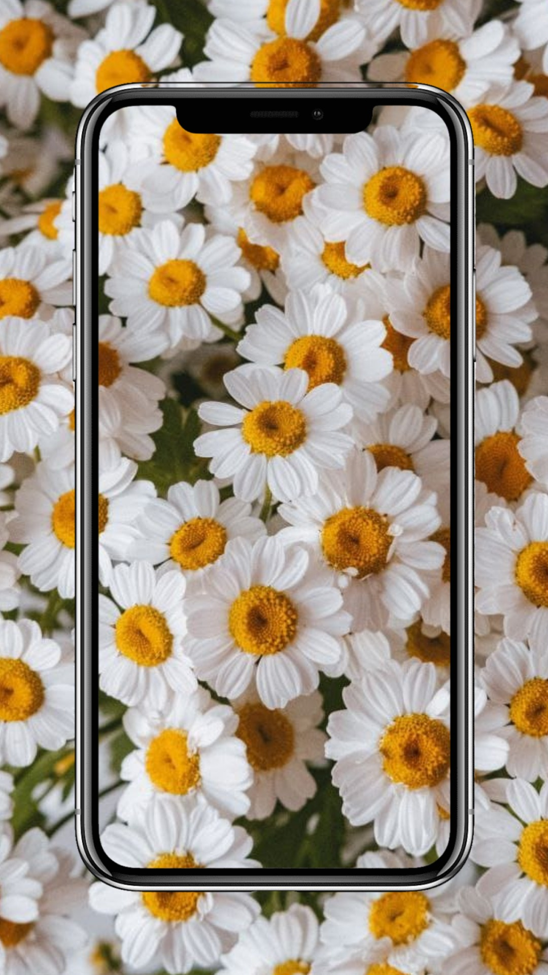 Создайте настоящую цветочную композицию на экране вашего телефона! Обои с ромашками вам точно понравятся)